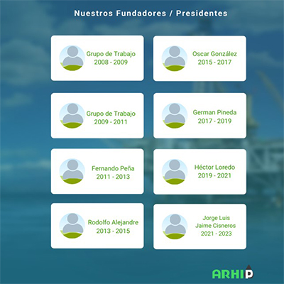 ARHIP fue fundada en 2008 con un grupo de profesionales preocupados por buscar sinergias en el Sector Petrolero en México. En el 2011 se protocolizó por primera vez como Asociación Civil con un poco más de 10 empresas del sector, el primer presidente en esa nueva etapa fue Fernando Peña quien representaba a la empresa Petrobras.